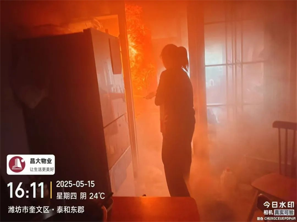 下午,西門(mén)巡查組在例行衛(wèi)生清理過(guò)程中,王紹艷經(jīng)理、隋麗萍、梁曉月及保潔主管毛麗梅四人突然聞到濃烈煙味,隨即聽(tīng)到業(yè)主呼救聲。四人來(lái)不及做好防護(hù),當(dāng)即拎起滅火器,沿樓梯飛奔至業(yè)主家,發(fā)現(xiàn)廚房火勢(shì)已起,濃煙彌漫。