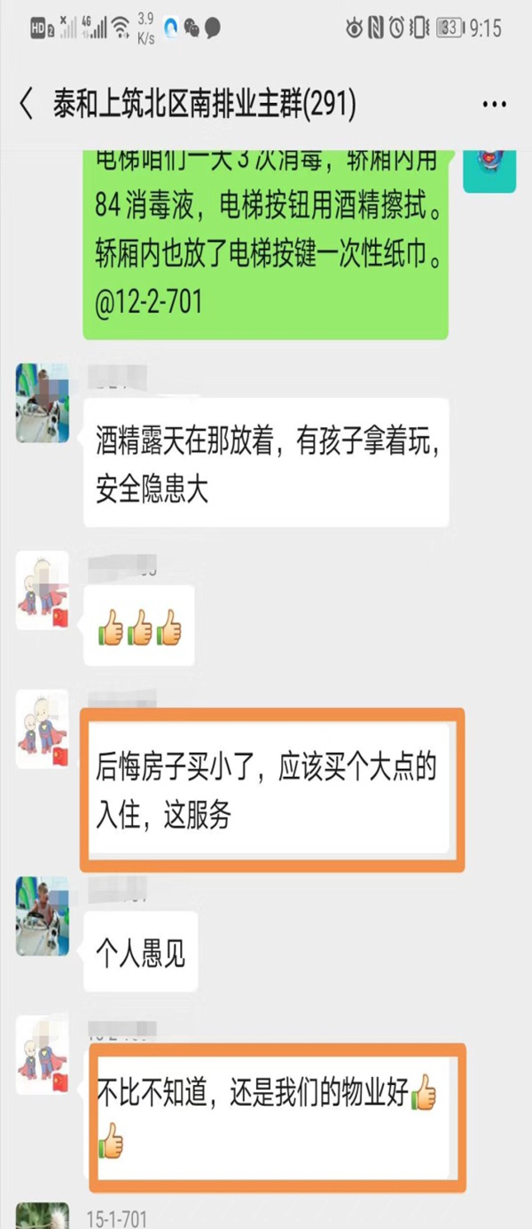 防疫期間,各物業(yè)項(xiàng)目部安排社區(qū)內(nèi)每日不低于兩次消殺,消殺范圍包括:道閘、電梯、單元門、游樂設(shè)施、小區(qū)出入口、空中地面、綠化帶及生活垃圾桶等公共區(qū)域,對(duì)公共電梯這一重點(diǎn)區(qū)域,每天每?jī)尚r(shí)一次對(duì)電梯轎廂按鈕、轎廂扶手用75%酒精進(jìn)行擦拭消毒,電梯轎廂地面每日1次用消毒液噴灑消毒,電梯樓層按鈕每日2次用75%酒精進(jìn)行擦拭消毒,。為避免口罩等防疫物資的二次傳播,園區(qū)內(nèi)還設(shè)置了專門的廢棄口罩專用垃圾桶。為了將病毒攔截在外,物業(yè)安管員24小時(shí)值守,對(duì)小區(qū)人員和車輛嚴(yán)控進(jìn)出,對(duì)外來(lái)人員全面排查,并制作了小區(qū)出入證發(fā)放給小區(qū)業(yè)主,小區(qū)住戶必須憑證進(jìn)出小區(qū)。