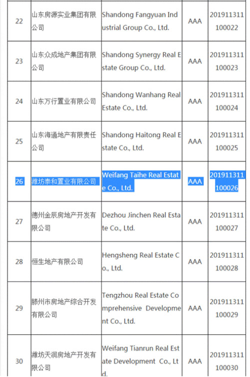 2019年12月4日,中國房地產業(yè)協(xié)會公布了2019年信用等級A級以上房企名單,集團泰和置業(yè)有限公司榮獲信用最高等級“AAA級信用企業(yè)”稱號,這也是公司繼2015年獲得中房協(xié)“AAA”級企業(yè)信用認證之后,再次獲得國家權威機構的肯定與認可。